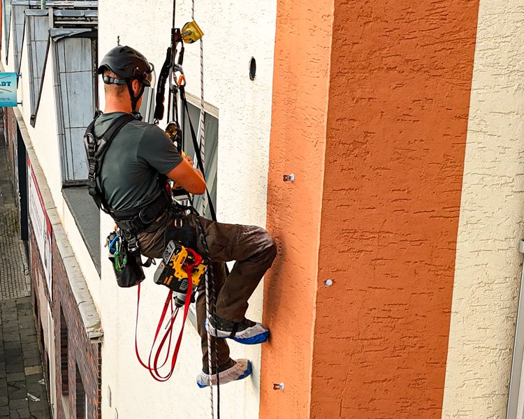 Auch an schwer zugänglichen Stellen führen wir unsere Arbeiten sicher und zuverlässig aus. Mithilfe des Industriekletterns können Maßnahmen flexibel umgesetzt werden, ohne unnötige Eingriffe in bestehende Strukturen.